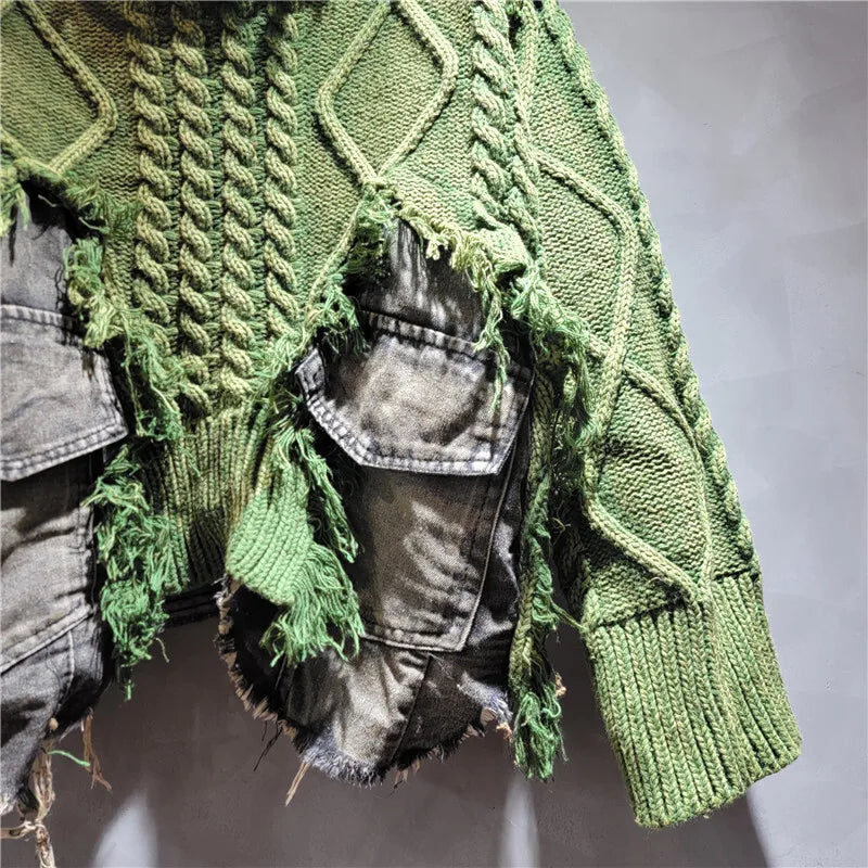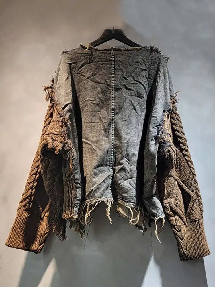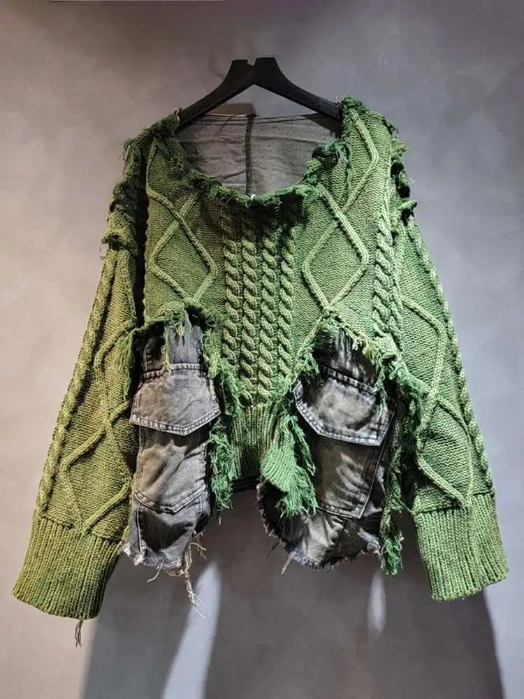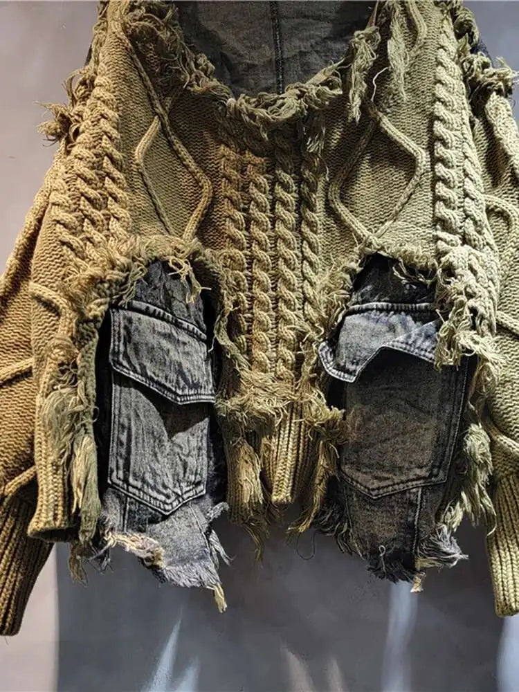 DEAT Women Pullover Long Sleeve Irregular Do Old Patchwork Pockets Vintage Washed Denim Sweater 2026 Summer New Fashion 29L8195
