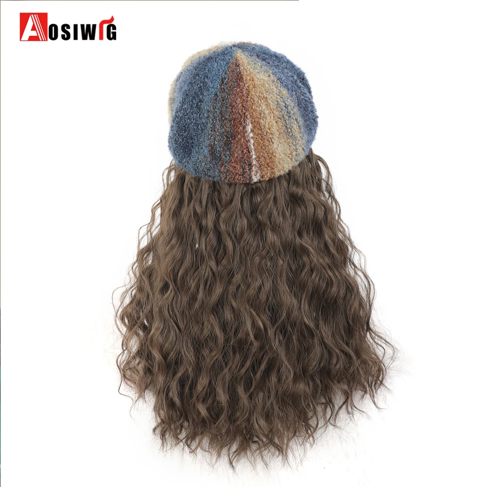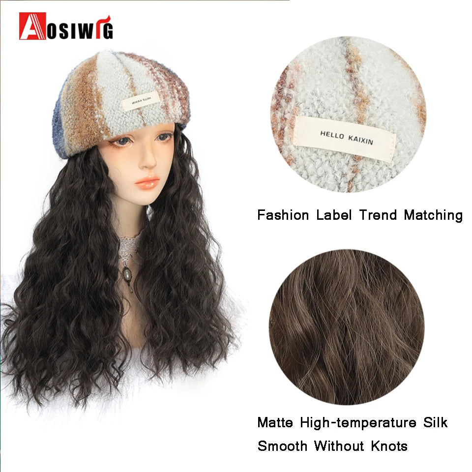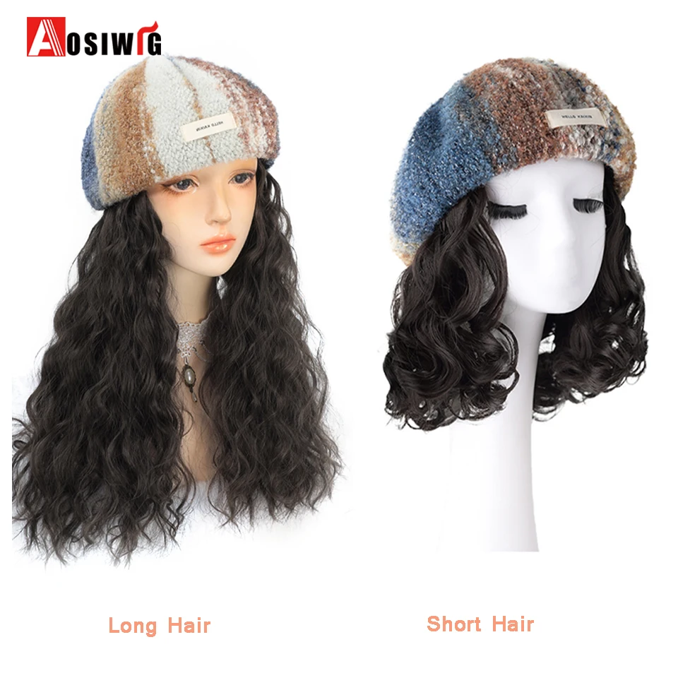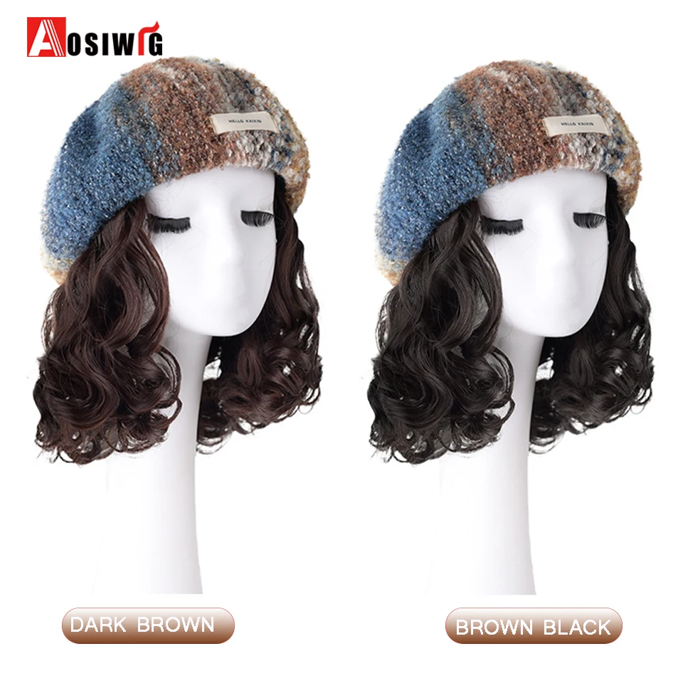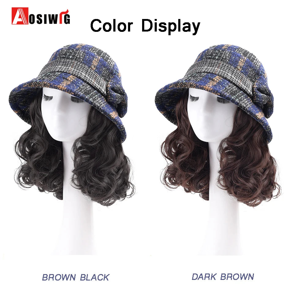 Hat Wig Synthetic Short Curly Wavy Hair Wigs With Hat Fisherman's Cap Wig Hair Extension Black Brown Wig Cap