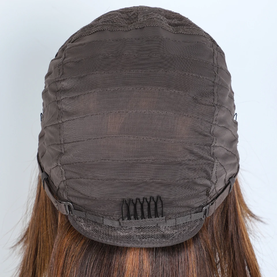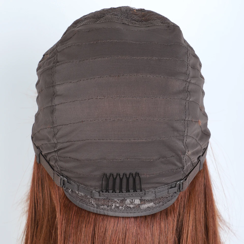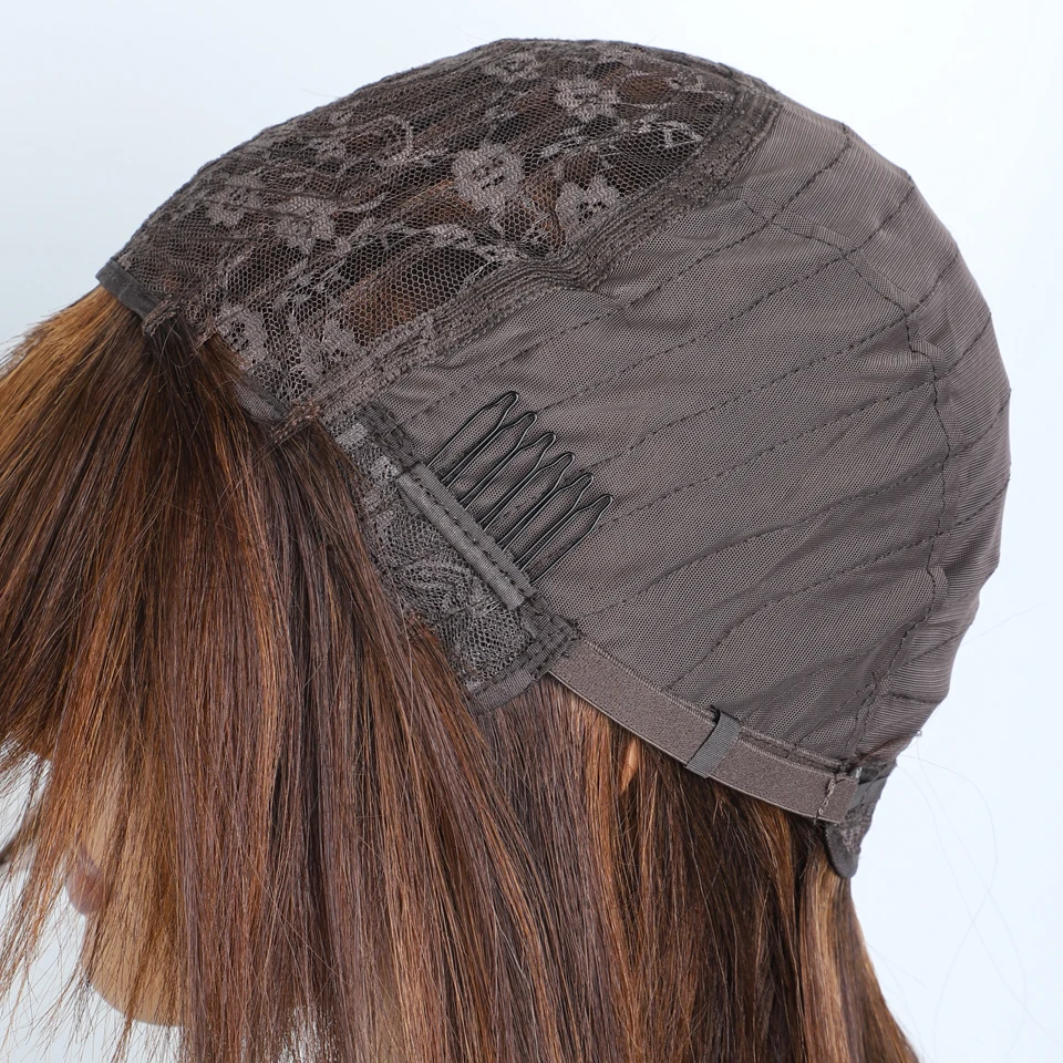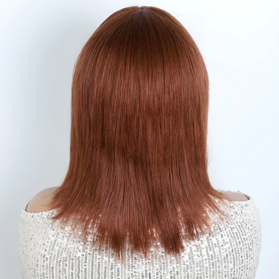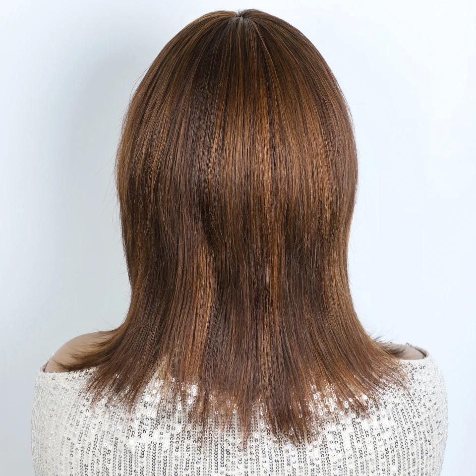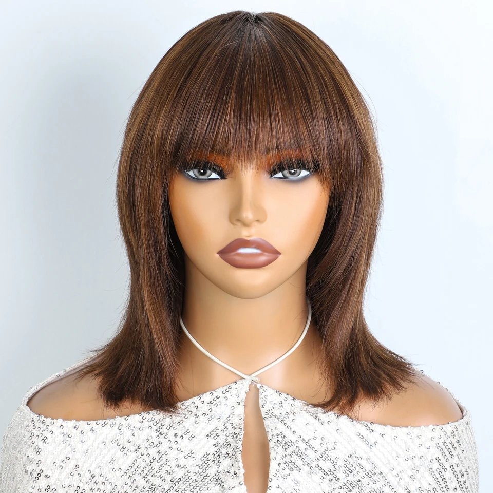 Lekker Glueless Short Brown Wolf Cut Straight Bob Human Hair Wigs With Bangs For Women Brazilian Remy Hair Ready to Wear Bob Wig