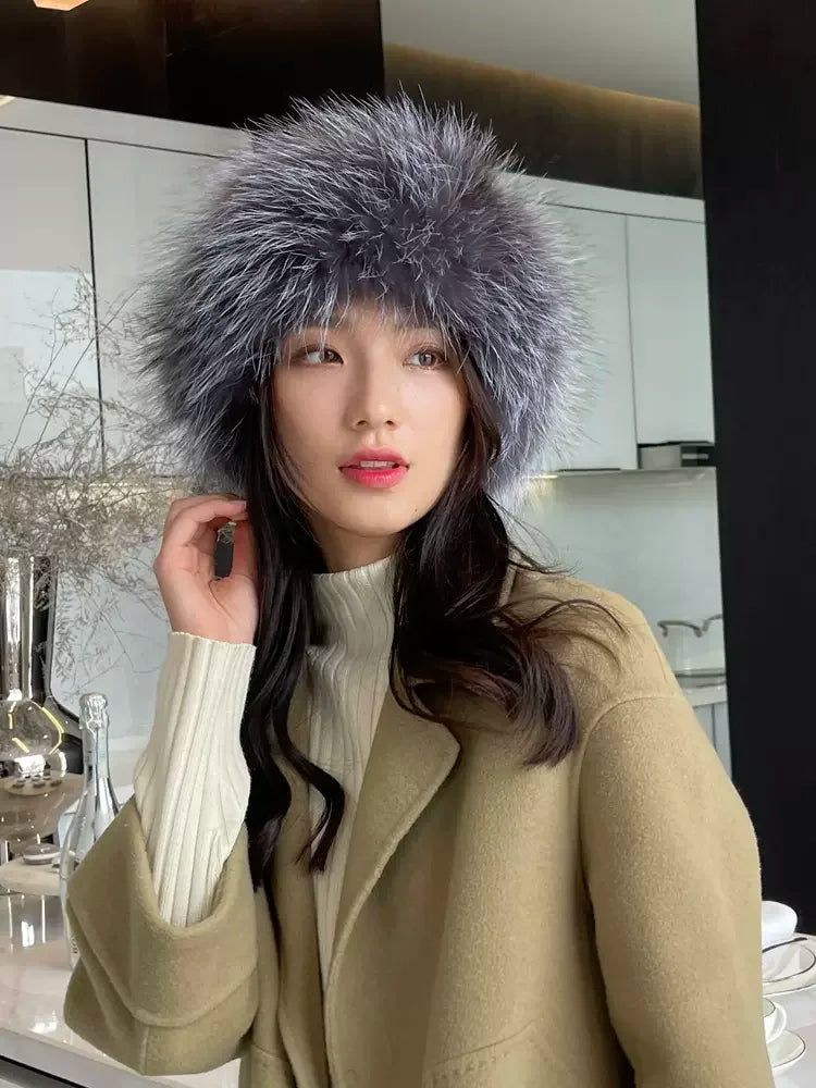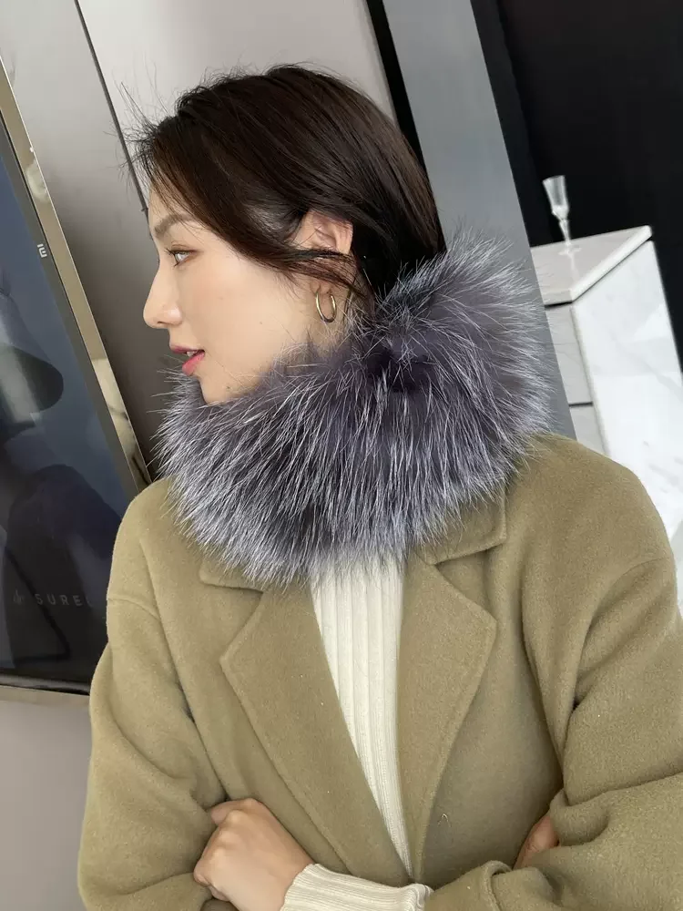 MS.MinShu-Hand Made Knitted Elastic Headband for Women, Genuine Fox Fur, Head Warmer, Neck Ring, Winter