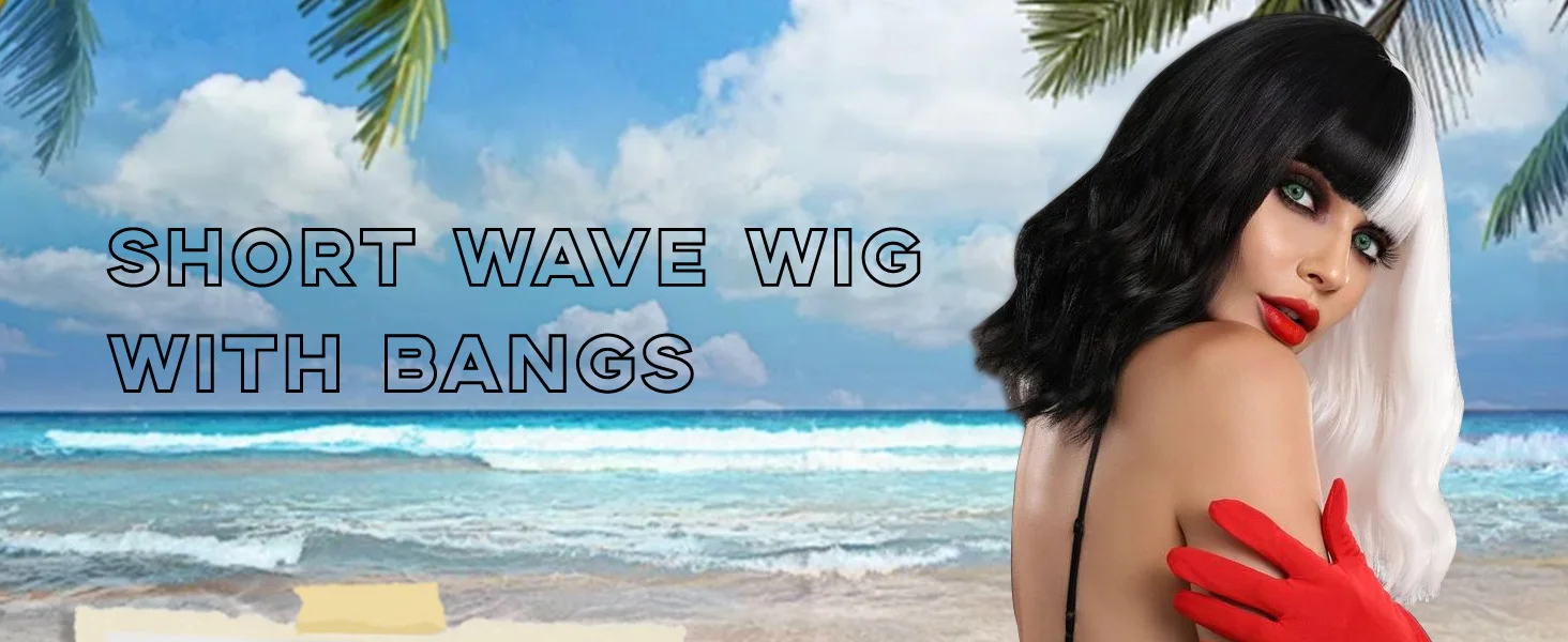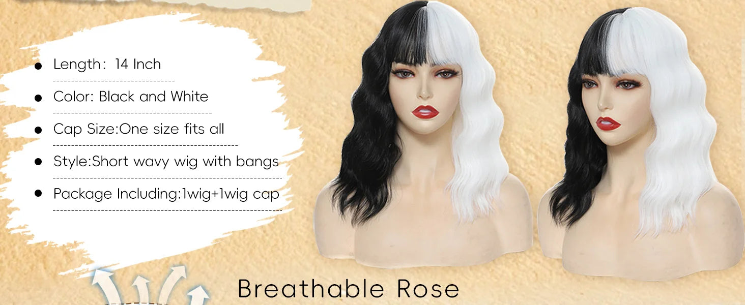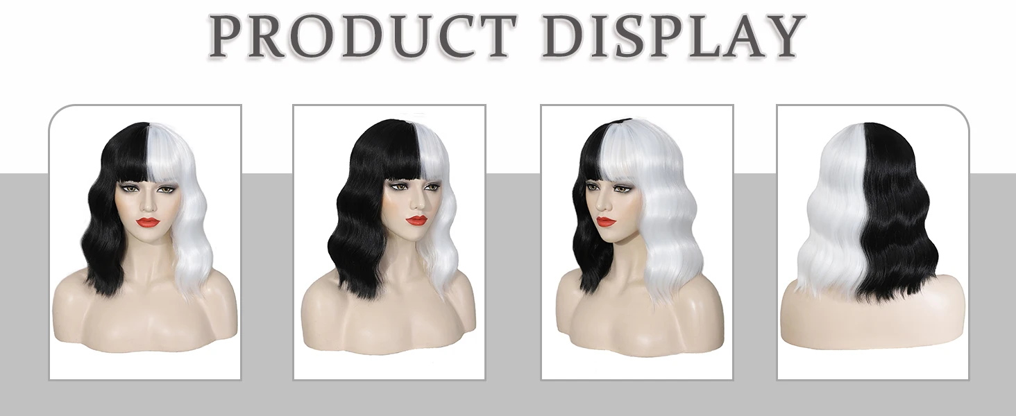 Synthetic Black and White Wigs for Women Costume Short Bob Wavy Curly Wigs Heat Resistant Wigs for Party Cosplay Halloween