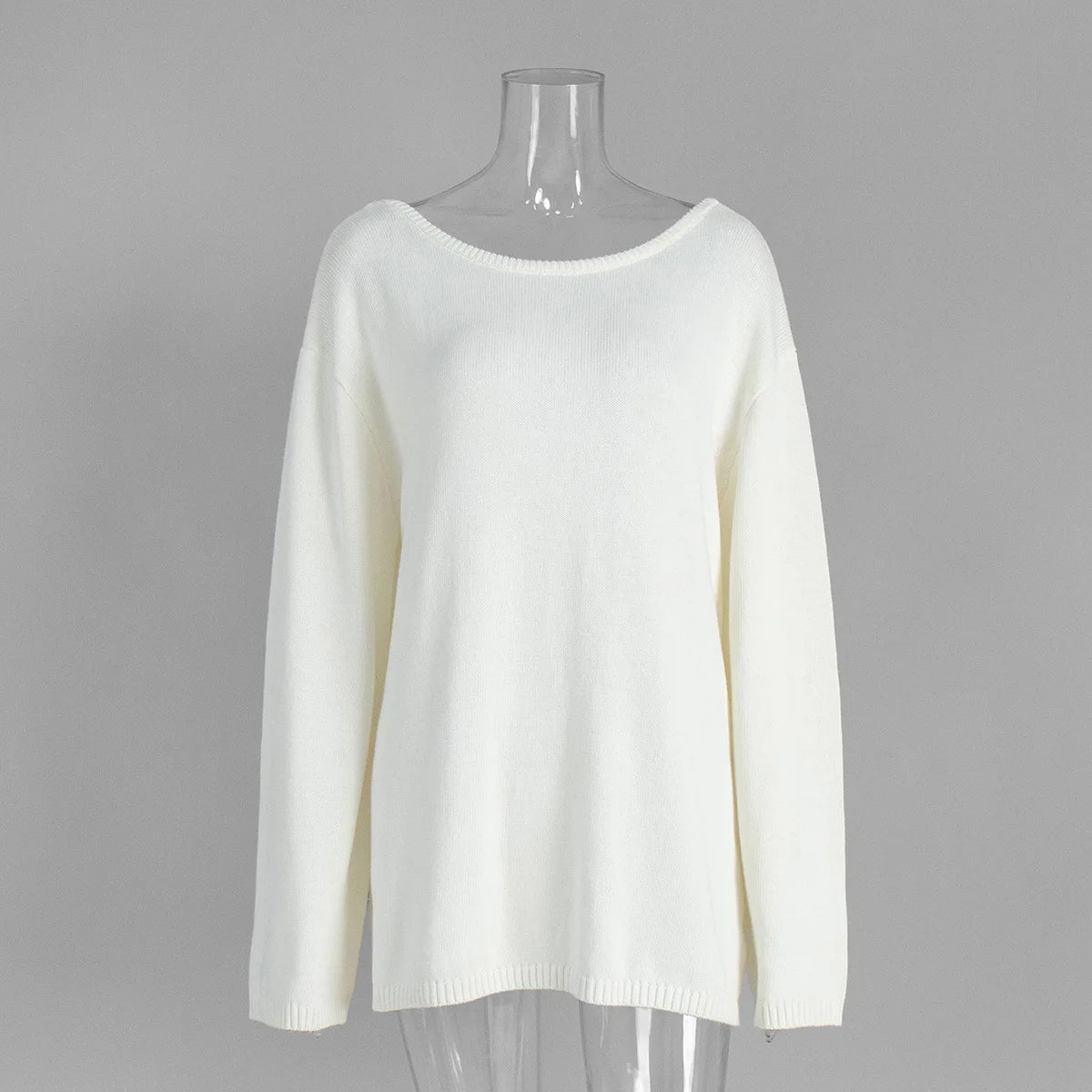Tossy Female Backless Loose Knitwear Sweater Solid Casual Elegant Long Sleeve Patchwork Commute Clothes Women's Knit Pullover