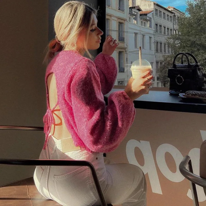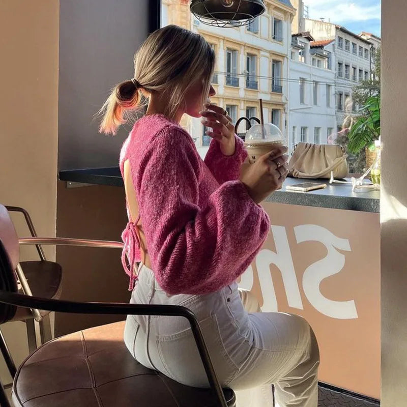 Tossy Lace-Up Backless Sweater Pullover For Women Sexy Long Sleeve Fashion Turtleneck Loose Bandage High Street Camisola Top