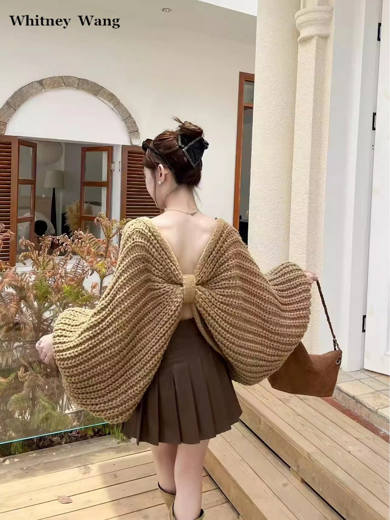 WHITNEY WANG Designer Style 2025 Autumn Winter Fashion Streetwear Butterfly Bow Sweater Women Oversize Pullover